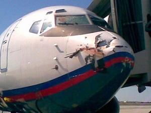 例えば、Bird Strikeを受けると機体前方、翼前縁や